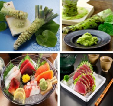「你們台灣人的用法是將它們混攪一起,這種用法是絕對的錯誤。」他看我一眼繼續說道:「標準用法是用筷子將山葵泥,輕切一小塊放在生魚片上,再用另面微沾醬油送入口中。這種用法才可吃出生魚片的鮮甜。此外,生魚片送入口中之後,利用牙齒之咀嚼動作將嗆氣擴散,如此一來就不會被其辛辣嗆得涕泗縱橫啦。」青木君的愷切教導,著實讓我在餐桌上受益不少。