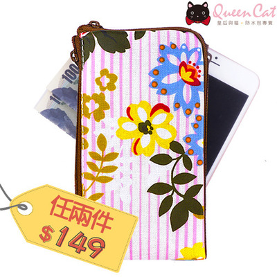 【實用商品推薦】4.5吋雙拉手機L包 - 粉條紋花 結婚送禮推薦網購人氣商品