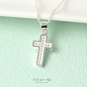 【網路熱銷商品】項鍊 925純銀水鑽凹面十字架 挖好康省錢大作戰