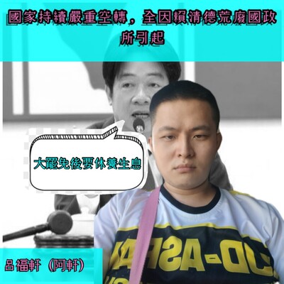 各位高雄朋友們大家好!我是呂福軒!最近談到內閣改組,身為部落客的我認為全部換人,包含賴清德和卓榮泰這兩人也要將...