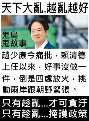 看到你現在的賴清德,不好好努力拼經濟、拼民生,只會想著忙鬥爭,令人感到非常的可惜!希望賴清德回頭是岸,若執迷不悔,上天必定會禍延你的子孫!