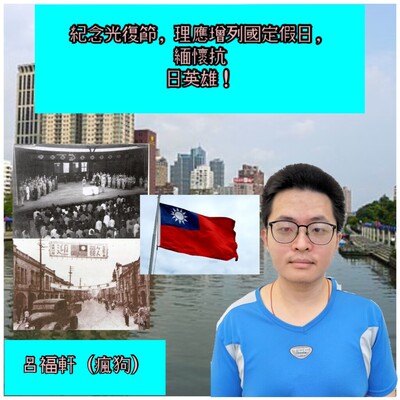 《瘋狗觀點》紀念光復節,理應增列國定假日,緬懷抗日英雄