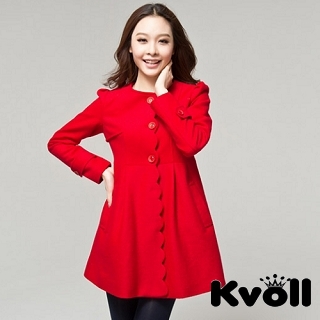 momo,momo購物台,momo購物網>【KVOLL中大尺碼】大紅色韓版高腰花瓣折邊毛呢外套大衣