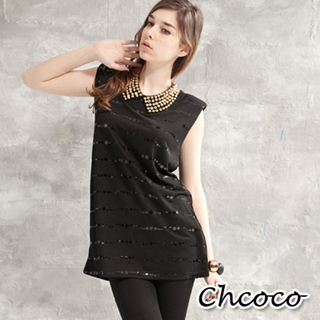 【Chcoco】玩美曲線 圓亮片拼接頸鍊洋裝(黑色)那裡買