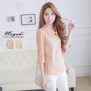 第一次看到【MAYUKI】襯衫領拼蕾絲雪紡上衣-S.M,感覺好好穿,也得好喜歡回家後馬上google【MAYUKI】襯衫領拼蕾絲雪紡上衣-S.M哪裡買最便宜.心得文.試用文.分享文.好用嗎.推薦.評價.熱銷.開箱文.優缺點比.............果然被我料中,【MAYUKI】襯衫領拼蕾絲雪紡上衣-S.M網路的有賣~而且還更"便宜"