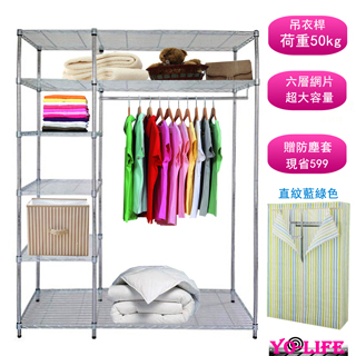 【yo-life】六層大型鐵力士衣櫥組-贈直紋防塵套(122X46X180cm)詳細介紹如下~參考看看唷