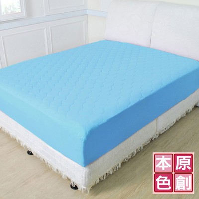 【台灣製造】繽紛心情 加大舖棉床包型保潔墊(水藍)