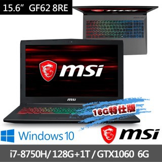 【購買優惠】【MSI 微星】GF62 8RE-062TW 15.6吋1060獨顯電競筆電(i7-8750H-16G-128G+1T-GTX1060-6G-16G特仕版) 找活動購買折扣