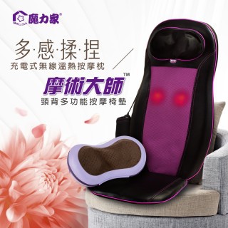 【本日刷卡商品優惠】【魔力家】多感揉捏充電式無線按摩枕+摩術大師按摩椅墊(溫熱枕-按摩器-紓壓-舒壓-頸部-按摩墊) 搶便宜