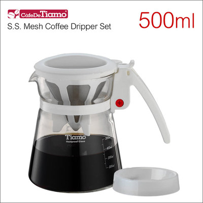 【2017熱門產品】【Tiamo】極細濾網分享壺-附滴水盤 500ml 白色(HG1975)