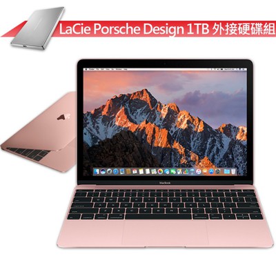 【省錢】【LaCie Porsche Design _ 1TB 外接硬碟組】MacBook 12吋 Core M雙核 筆記型電腦《玫瑰金》(MMGM2TA-A)