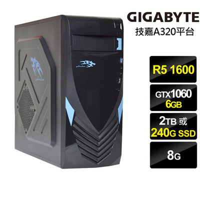 【2017熱門產品】【技嘉A320平台】R5六核{進擊狂神}GTX1060獨顯電玩機(R5-1600-8G-240G_SSD-GTX1060-6G)