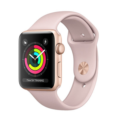 【熱銷產品】【Apple Watch】Series 3 42公釐金色鋁金屬錶殼搭配粉沙色運動型錶帶
