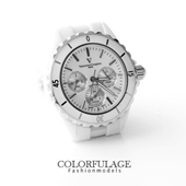 殼跟錶帶採用實心精密全陶瓷設計,底蓋為不銹鋼材質