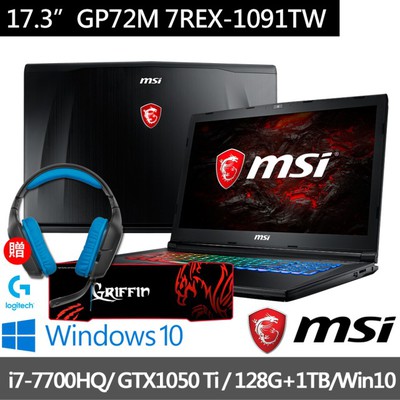 商品訊息描述 【MSI 微星】GP72M-1091 17吋電競筆電(i7-7700HQ/8G/128G+1TB/GTX1050Ti-4G/win10) 特色說明:120Hz / 5ms廣視角電競面板支援NVMe M.2 SSD by PCIe Gen3 SteelSeries 電競專用全彩可調式背光鍵盤Cooler Boost 4散熱技術USB 3.0 Type-C介面Matrix Display多螢幕輸出顯示技術Killer Gigabit電競專用網路 規格特色:17.3吋Full HD(1920x1080), 120Hz/5ms廣視角電競面板 防眩光霧面護眼螢幕Intel Core i7-7700HQ四核心處理器(Base 2.8GHz up to 3.8GHz)(6MB Cache)Intel HM1758GB DDR4-2400,最大可擴充至32GB128GB SATA SSD+ 1TB 2.5吋 7200轉 HDD(SSD相容於NVMe M.2 SSD by PCIe Gen3 x4)nVIDIA GeForce GTX1050 Ti GDDR5 4GB獨顯SteelSeries 電競專用全彩可調式背光鍵盤折價券代碼Windows 10 Home