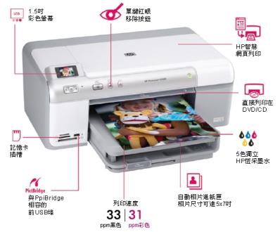 取得栩栩如生的相片、雷射品質的文件,以及個人化的 CD/DVD1,透過多功能的 HP Photosmart D...