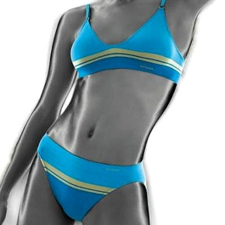 Poliamida 聚酯胺纖維 (功能性複合布料) Elastano 彈性纖維(即所謂的 Lycra 萊卡彈性纖維) 這兩種材質提供高伸縮與柔軟的特性,穿起來服貼,舒適,能讓曲線更玲瓏,所以被廣泛的應用於內衣,泳衣,絲襪,和運動休閒服上.