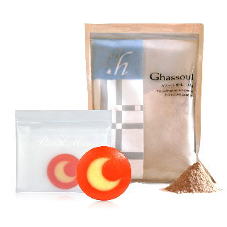 【奈婭蒂 GHASSOUL】天然火岩泥粘土面膜+日本進口超強保濕月光面膜皂(150g 粉狀+紅色10g)