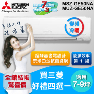 【MITSUBISHI 三菱】7-9坪變頻冷暖分離式一對一冷氣機(MUZ-GE50NA_MSZ-GE50NA)