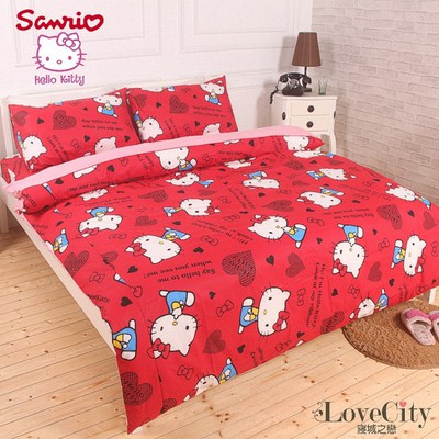 熱騰騰的【Love City 寢城之戀】HELLO KITTY 雙人四件式兩用被套床包組(我是kitty)價格評比