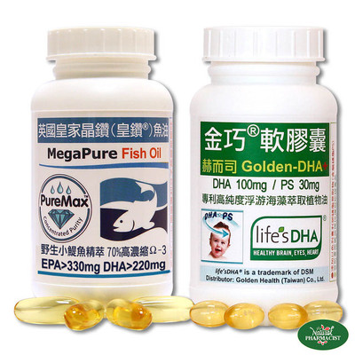 搶便宜【赫而司】智慧家庭DHA超值組(金巧軟膠囊DHA藻油+英國皇家晶鑽魚油)好康-限時