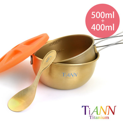 強檔優惠【鈦安純鈦餐具TiANN】鈦聰明便當盒金碗 中500ml+小400ml 橘蓋(含密封矽膠蓋 含匙)網友開箱介紹-哪個最便宜