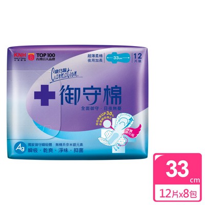 【康乃馨】御守棉超薄衛生棉夜用加長12片8入 整箱(12片-包;8包-箱)