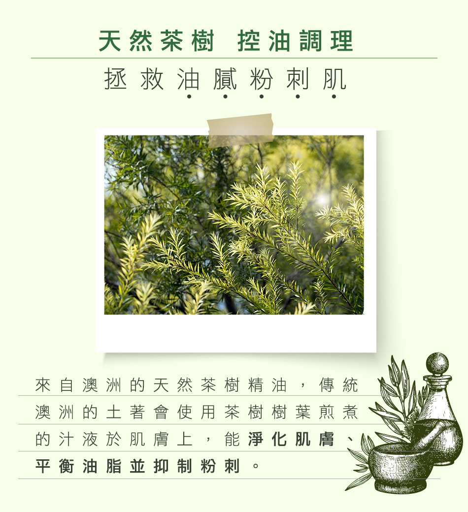 - 減少油光產生並舒緩肌膚