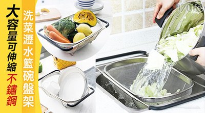 【周年慶限時特價】大容量可伸縮不鏽鋼洗菜瀝水籃碗盤架- 特價商品年終募集