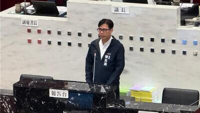 高雄市長陳其邁今(7)日赴市議會進行施政報告時提及,台積電高雄廠進度超前,而串聯台積電嘉義先進封裝、台南5奈米與3奈米、高雄2奈米及屏東先進材料園區,南台灣已形成全球最大、最完整的半導體生態系。(柯宗緯攝)