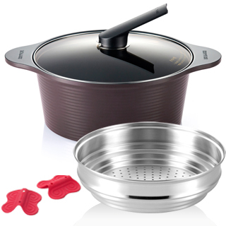 【Happycall】高溫壓製陶瓷不沾湯鍋+蒸籠組(28cm)