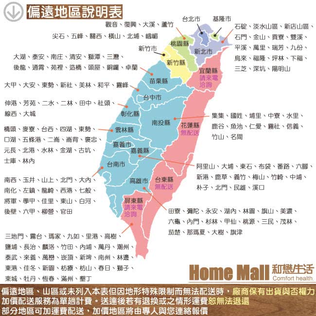 5.大型傢俱類、實因特殊地型限制偏遠山區、鄉鎮無法送貨時,本公司保有出貨與否權利