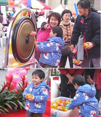 台北市許多蒙特梭利教學的園所,在市政府的廣場聯合舉辦了一個園遊會。除了園遊會之外,還有一些為期約一週的展覽。在此之前,學校讓孩子們認養愛心小豬,是傳統那種小豬造型的撲滿,一隻10元,孩子們帶回家後把牠餵肥,在園遊會這一天捐出去。