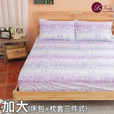 線上周年慶-【La Veda】紫波盪漾 雙人加大三件式磨毛超細纖維床包+枕套組 評價