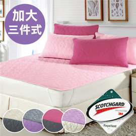 線上周年慶-【CERES】雙色幸運草系列3M防潑水加大三件式舖棉平單保潔墊(桃紅+深灰枕套)B0571-5L 分享文