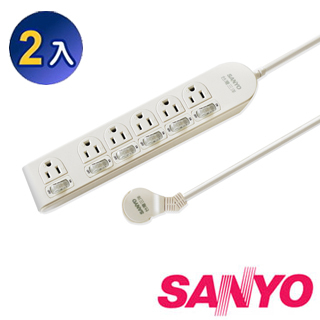 熱銷商品分享【三洋】SYPW-366A 3孔6座6切6尺平貼式安全延長線(2入優惠組)