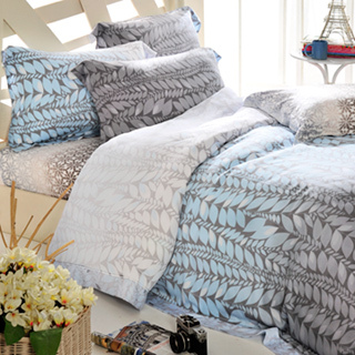 ◆視覺:A版-藤葉剪影件層設計,B版-萬花筒花紋漸層設計,被套三邊壓框,高貴典雅。