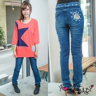 2015如何穿搭-【YOUNGBABY中大碼】BABY ELMO點點背口袋水鑽釦窄管內搭牛仔褲(2L-3L) 開箱文