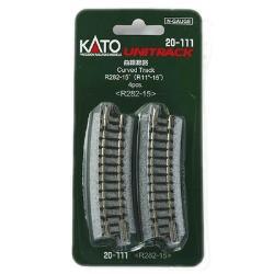 曲線線路 R282-15° (4個),KATO優質配件,建立屬於你的鐵道王國!