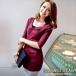 【OB嚴選】V領胸前抓皺五分袖長版上衣 快看哪!!好性感的小深V呀~~~