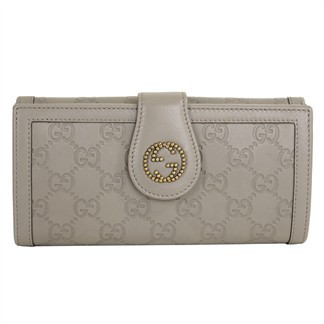 GUCCI 點狀大G logo壓紋全皮革邊前後翻扣長夾(灰)