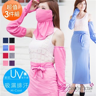 【BeautyFocus】台灣製SGS抗紫外線吸濕排汗防曬三件組3700-1-3