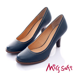 Miss Sofi-經典首選-小圓頭素色真皮中跟鞋~深藍