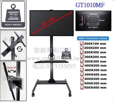 【俊銘Mall】GT1011MF附視訊架適用32~65吋可移動式液晶電視螢幕立架,電視螢幕承載50公斤,...