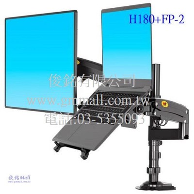 NB H180 適用22-32吋桌上型螢幕氣壓式支架+FP-2筆電托盤架,人體工學螢幕桌面顯示器支架,(歡迎來電洽詢)