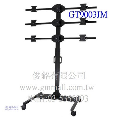 GT9003JM 適用13~27吋移動式九螢幕推車架,中柱高度約180cm,承載重量達100公斤,(可經銷/批發/零售)