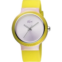 Lacoste 鱷魚 馬卡龍果凍色彩腕錶-銀x黃/40mm