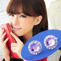 維克維娜 傲然亮眼。亮圓鑽鑲紫水鑽氣質 925純銀耳環