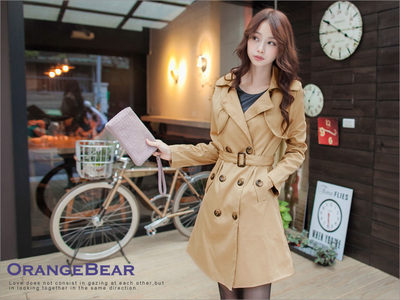 服裝推薦OB嚴選-時尚名伶~翻領雙排釦極修身長版嚴選風衣外套-2色