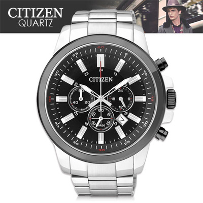 特惠 折扣的momo購物【CITIZEN 日系星辰】三眼_日期_ 碼錶_24時_不鏽鋼_紳士錶(AN8081-57E)-